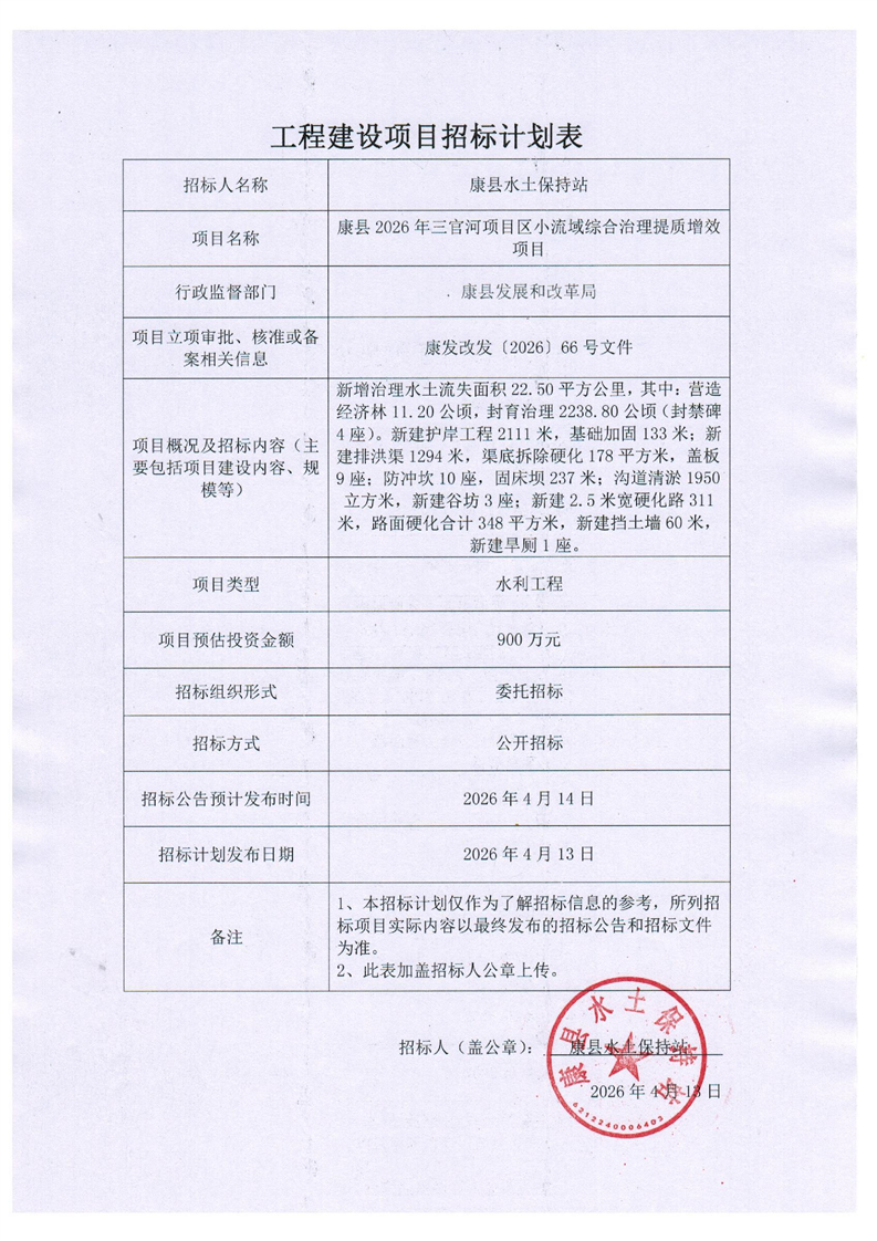 康縣2026年三官河項(xiàng)目區(qū)小流域綜合治理提質(zhì)增效項(xiàng)目