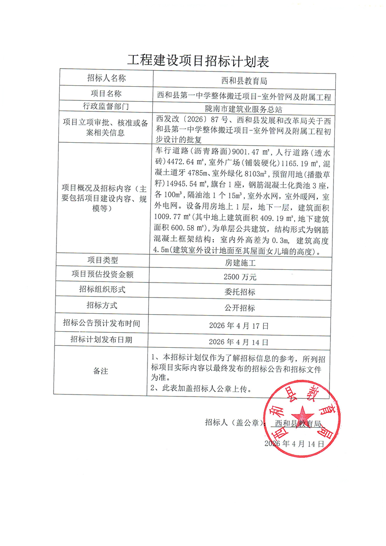 西和縣第一中學(xué)整體搬遷項目-室外管網(wǎng)及附屬工程