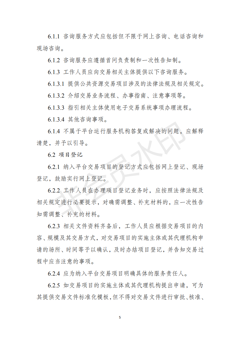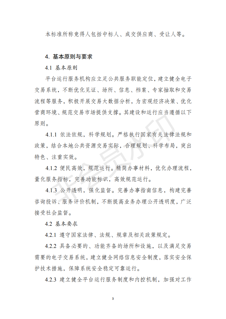 ??一、各地區(qū)應(yīng)根據(jù)有關(guān)法律法規(guī)及《標(biāo)準(zhǔn)》,按照簡化流程、提高效率、公開透明的要求,結(jié)合本地實(shí)際,制定本行政區(qū)域的公共資源交易平臺(tái)服務(wù)標(biāo)準(zhǔn),以標(biāo)準(zhǔn)化推進(jìn)全流程電子化、服務(wù)便捷化。